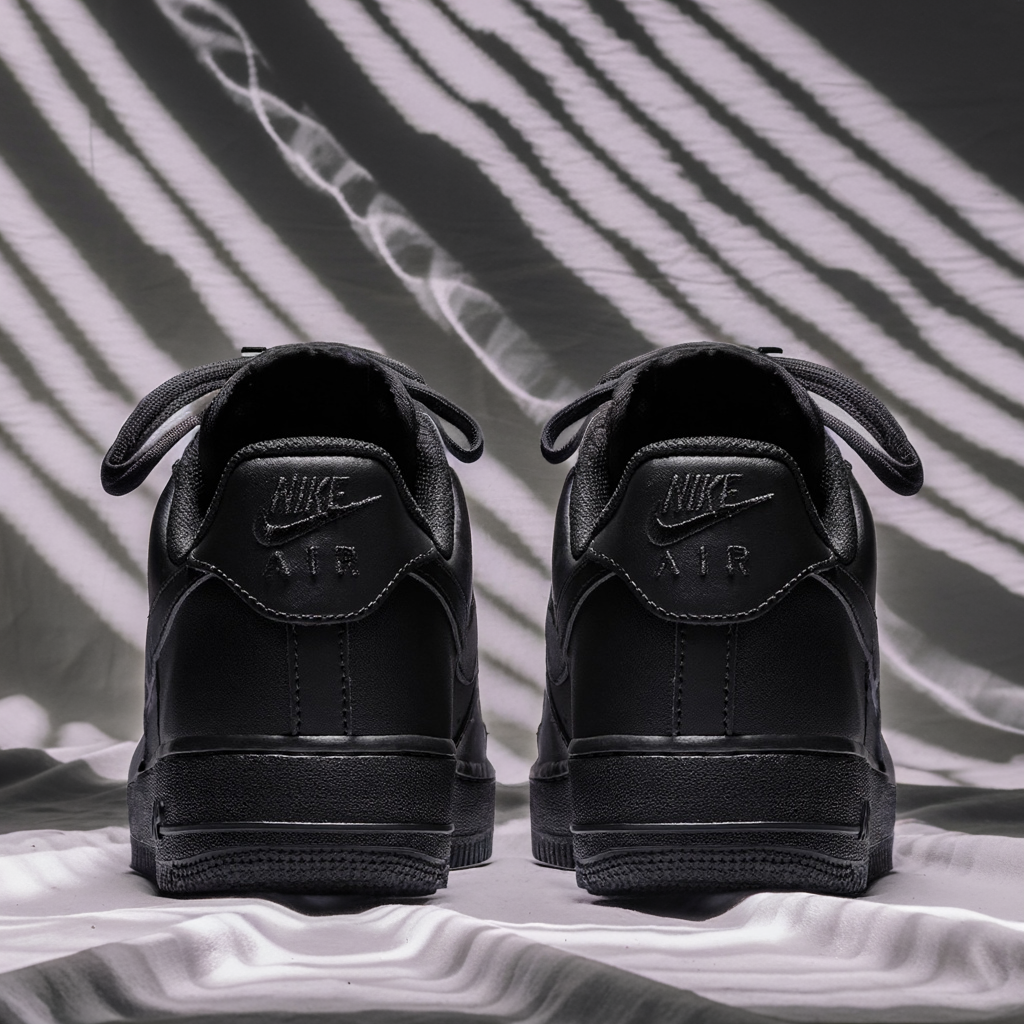 The Nike Air Force 1 '07 sneakers feature a sleek black design, perfect for an urban street style. Made with high-quality materials and the latest Nike technology, these shoes provide comfort and durability for everyday wear. Elevate your sneaker game with the iconic Nike Air Force 1.