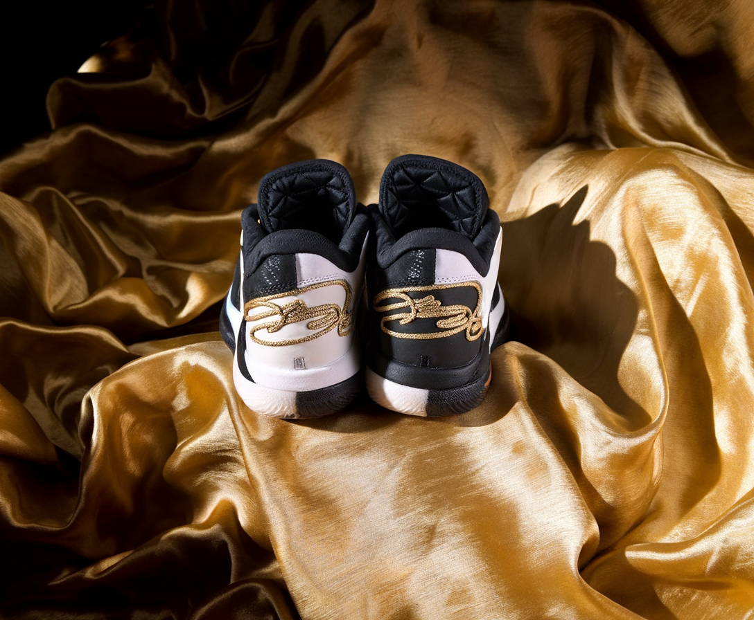 Unleash your full potential with the LEBRON XXII BHM sneakers from NIKE. Designed for top performance, these sneakers feature a modern white and black design with metallic gold accents. Their current SKU is HV8454-100, so you know you're getting the best of the best in quality and style.